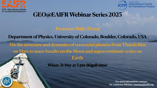 The East African Institute for Fundamental Research (EAIFR) wishes to inform those who may be interested of a GEO@EAIFR webinar. This seminar will take place on May 21, 2025 and will be broadcast live on ZOOM. It will also be recorded and later posted on the ICTP-EAIFR YouTube channel, where one can find the previous recorded GEO@EAIFR webinars. Below all the details: